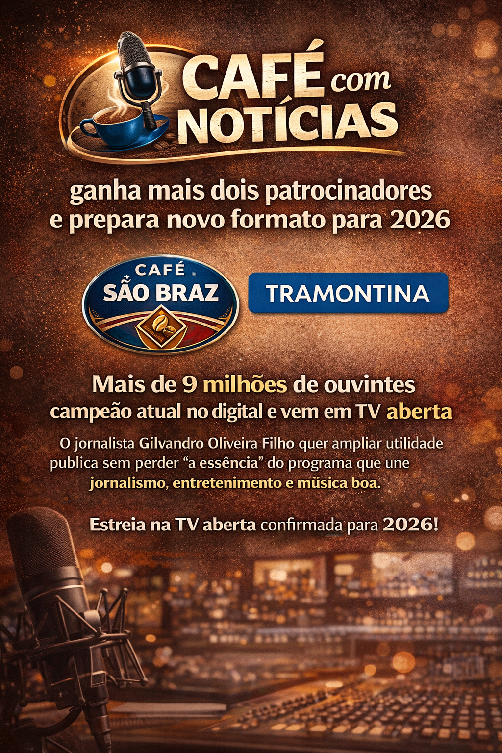 Com audiência consolidada, novos patrocinadores, ações sociais de impacto e a chegada à televisão aberta, o Café com Notícias se posiciona como um dos projetos de comunicação mais ambiciosos e inovadores do país para 2026.