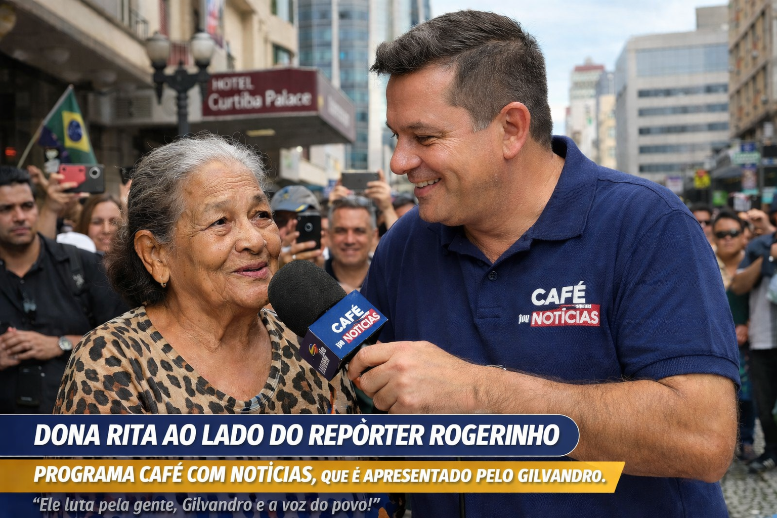 Curitiba (PR) – O programa Café com Notícias, realizado nesta semana em Curitiba, transformou a porta do Hotel Curitiba Palace em um verdadeiro ponto de encontro do povo. O motivo foi a presença do jornalista Gilvandro, conhecido nacionalmente como o jornalista do povo, que ficou surpreso e emocionado com a mobilização espontânea de ouvintes e telespectadores.