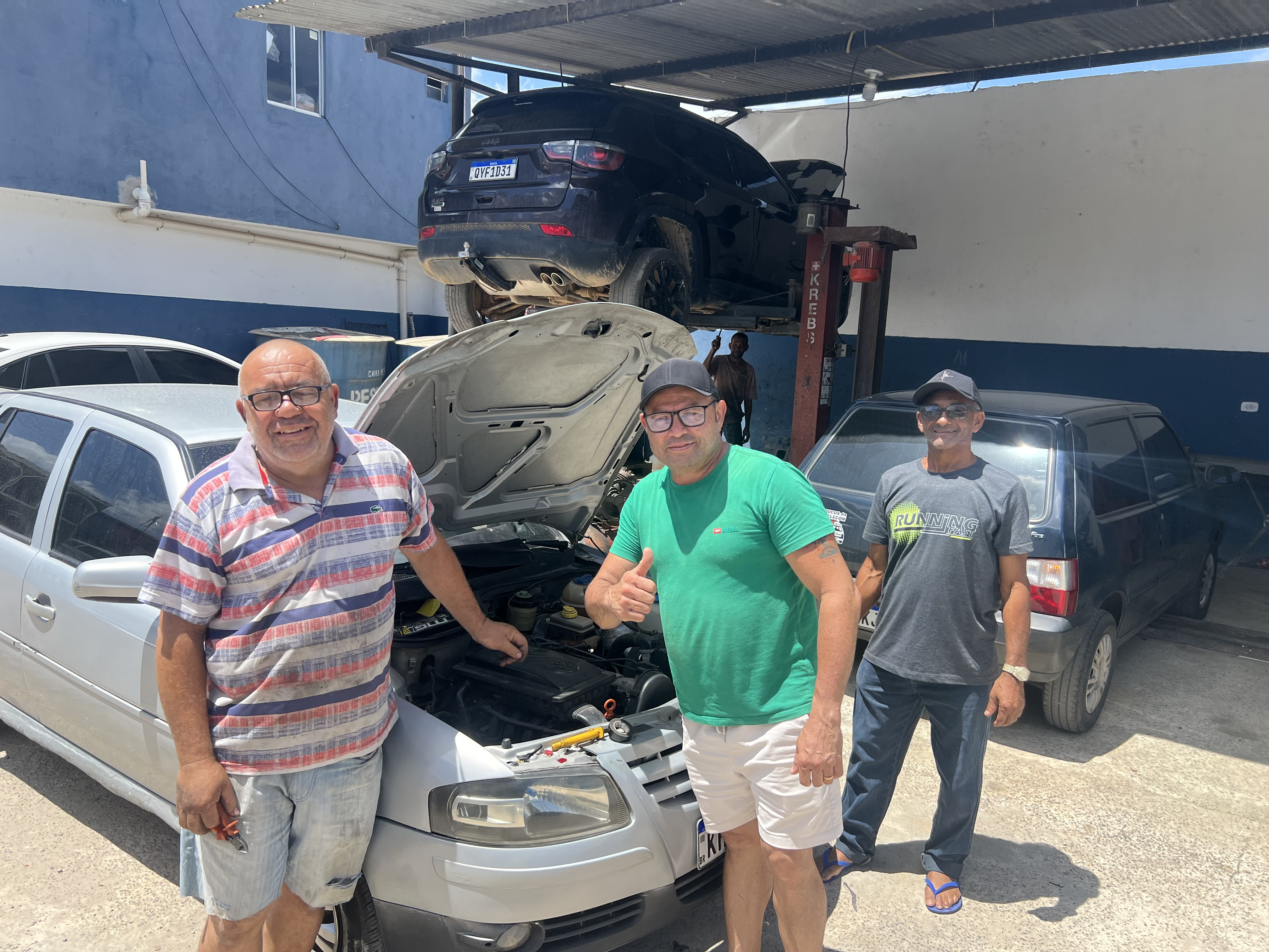 Entre os clientes atendidos estavam Valdomiro e Joedson, que compareceram à oficina para fazer a revisão de última hora antes de seguir viagem. Ambos reforçaram a importância de viajar com o carro revisado.