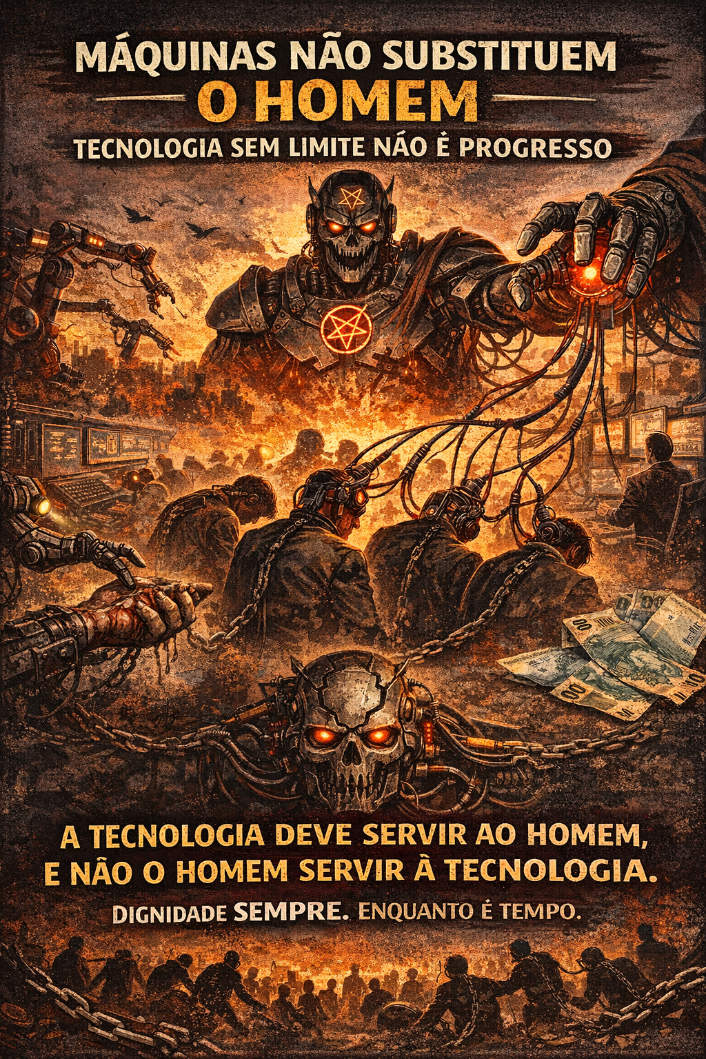 A tecnologia, quando mal utilizada, não apenas automatiza processos — ela elimina empregos, enfraquece relações humanas e cria dependência absoluta. Um futuro onde o ser humano se torna refém de sistemas, algoritmos e máquinas não é um futuro de evolução, mas de submissão.