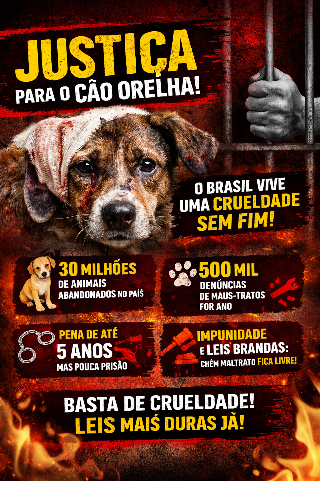 Orelha não pode ser apenas mais um nome esquecido. Ele representa milhares de animais que sofrem em silêncio todos os dias. Cada crime ignorado fortalece a barbárie.