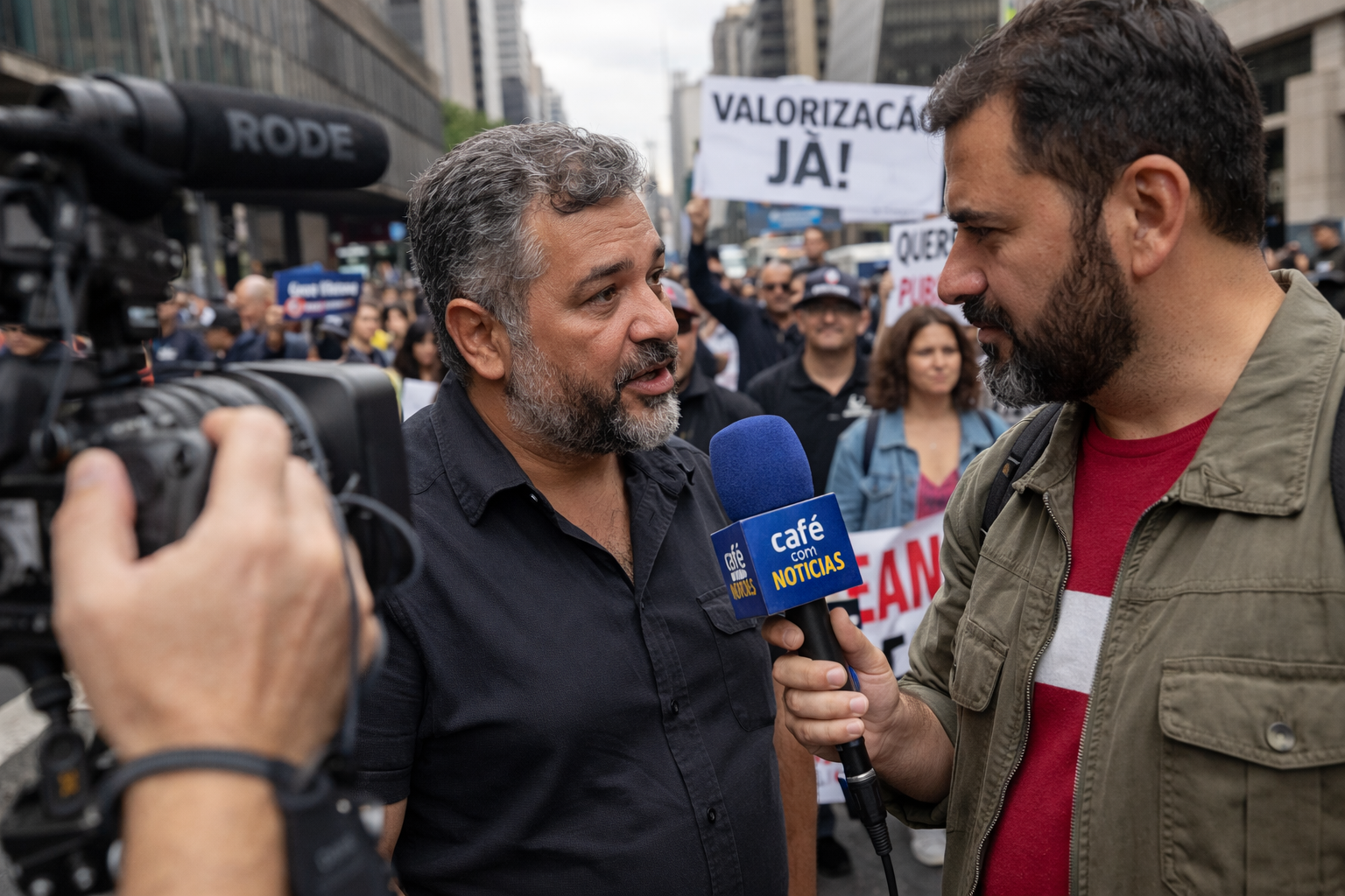 Toda a equipe do programa Café com Notícias, da Rede Cidade Sat, esteve presente no local, acompanhando de perto a manifestação e ouvindo os trabalhadores que raramente têm espaço para falar.